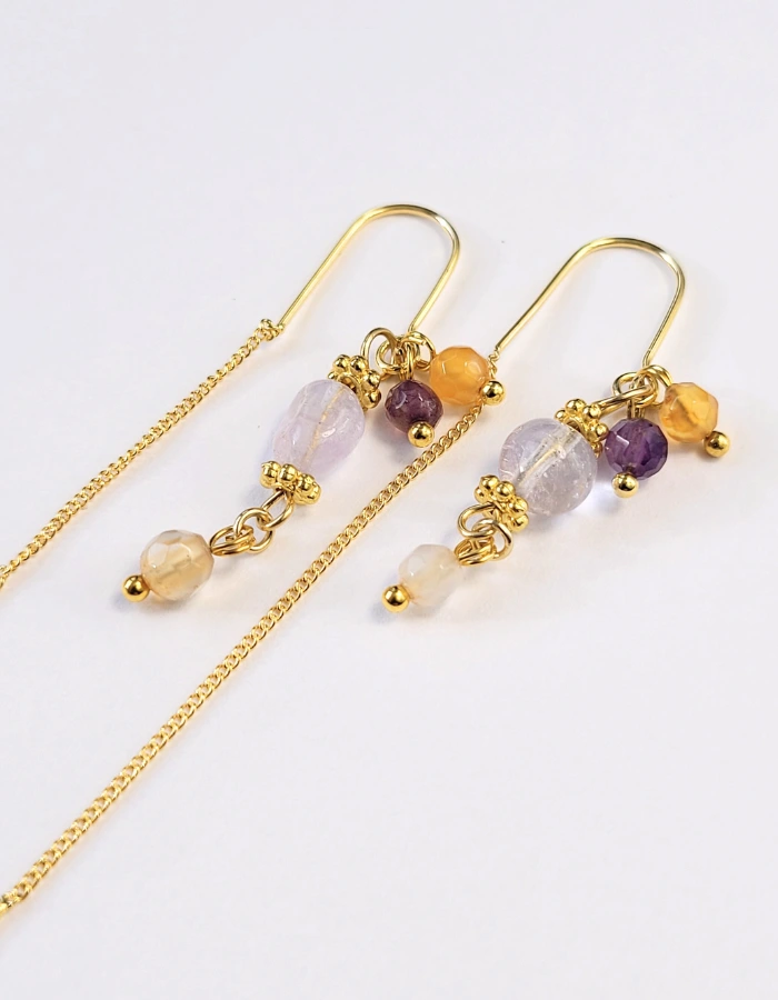 Náušnice z pozlátených komponentov a farebných minerálov.