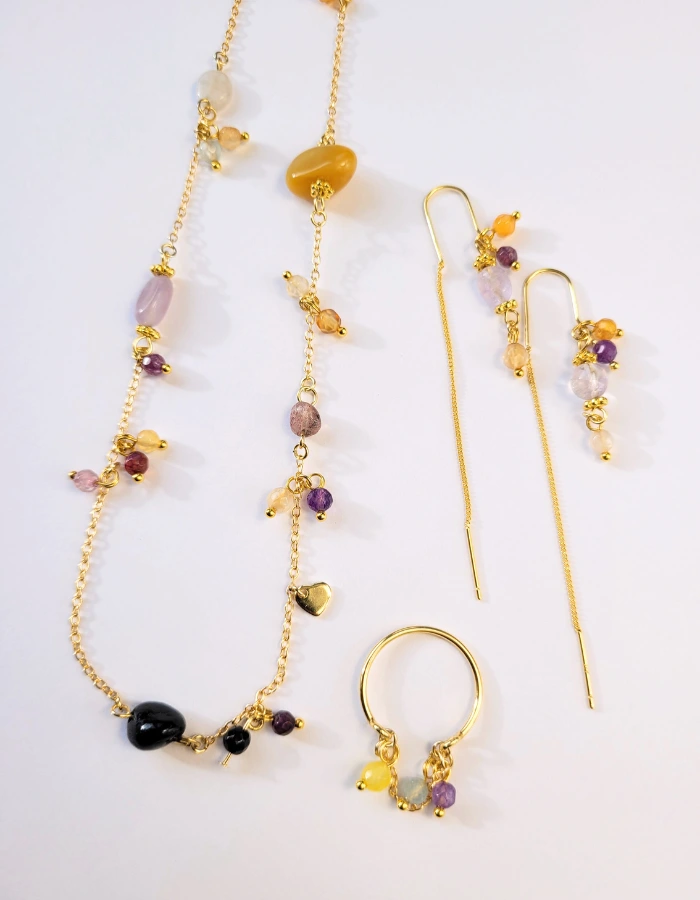 Elegantná, ženská a plná svetla – kolekcia Violetta spája pozlátené detaily s farebnými minerálmi, ktoré spolu vytvárajú jemnú harmóniu.