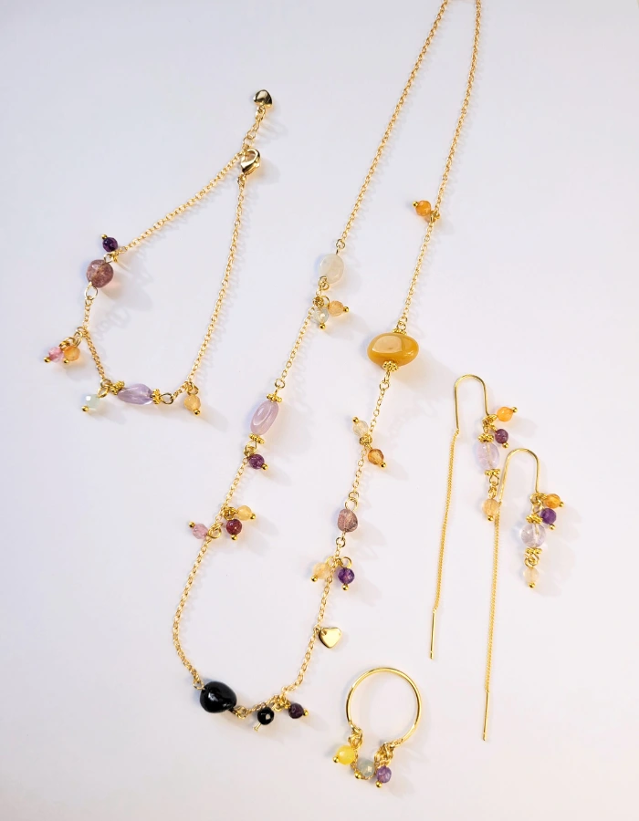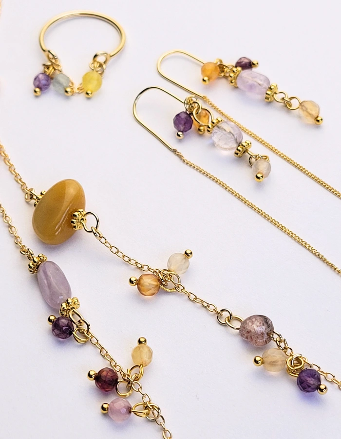 Elegantná, ženská a plná svetla – kolekcia Violetta spája pozlátené detaily s farebnými minerálmi, ktoré spolu vytvárajú jemnú harmóniu.